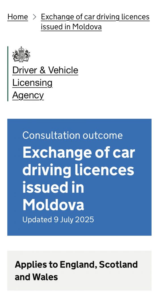 Great news for Moldovan nationals living in the United Kingdom! As of 2025, the UK government is moving forward with legislation that will allow Moldovan car driving licence holders to exchange their licences for a British equivalent, thanks to a successful public consultation led by the Driver and Vehicle Licensing Agency (DVLA). This long-awaited development reflects growing recognition of Moldova’s road safety and licensing standards and opens a new chapter in UK–Moldova relations.